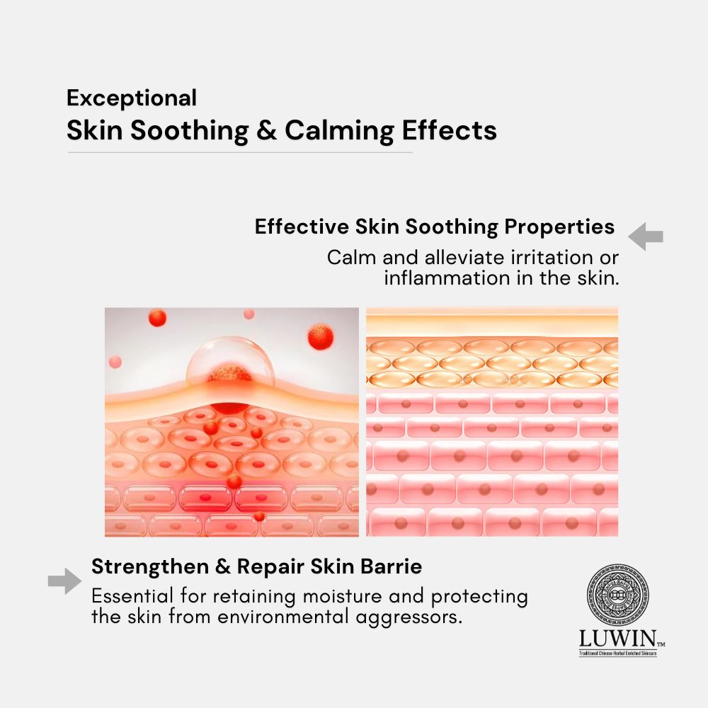 Key components such as Aloe Barbadensis Leaf Extract and Allantoin work together to reduce redness and irritation, offering immediate relief. Portulaca Oleracea Extract and Houttuynia Cordata Extract provide anti-inflammatory benefits, helping to calm inflamed skin. The inclusion of Sodium Hyaluronate and Hydroxyethyl Urea ensures deep hydration, which is essential for restoring the skin’s moisture balance after a facial treatment. Additionally, Scutellaria Baicalensis Root Extract and Paeonia Suffruticosa Root Extract contribute to the overall calming effect, promoting a more even and radiant complexion.